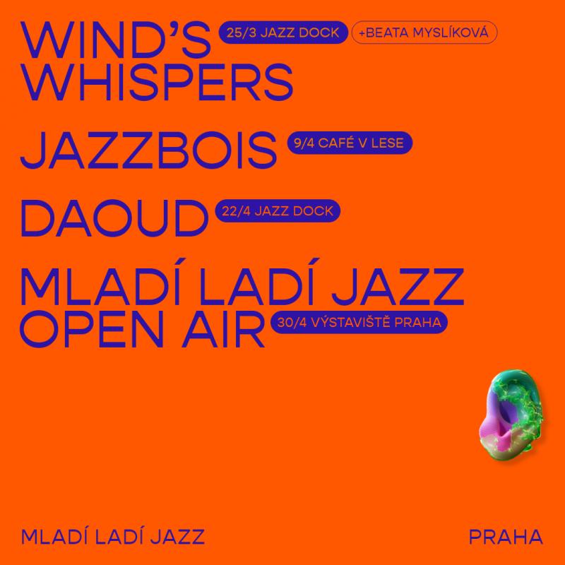 Festival Mladí ladí jazz vstupuje do jara sérií čtyř hudebních večerů, které nabídnou pestrý pohled na současný jazz a jeho alternativní přesahy. Představí výrazná jména současné evropské scény – mezinárodní projekt Wind’s Whispers s íránskou zpěvačkou Sabou Robatjazy, budapešťské jazz-hiphopové trio Jazzbois, francouzského trumpetistu daouda i mladou českou songwriterku a zpěvačku Beatu Myslíkovou. Jarní sérii zakončí na Mezinárodní den jazzu tradiční Open Air Mladí ladí jazz se vstupem zdarma, který se letos poprvé uskuteční na Výstavišti Praha. Vstupenky na všechny ostatní koncerty jsou v předprodeji v síti GoOut. Více informací o kompletním programu festivalu najdete na www.mladiladijazz.cz.